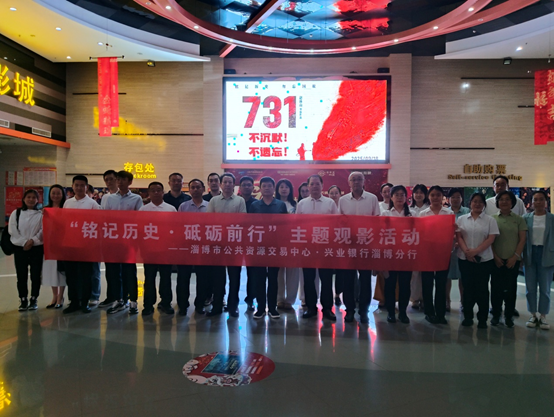 2025年9月18日下午,淄博市公共资源交易中心与兴业银行淄博分行联合举办“勿忘国耻、砥砺前行”主题教育活动,组织员工集体观看电影《731》。