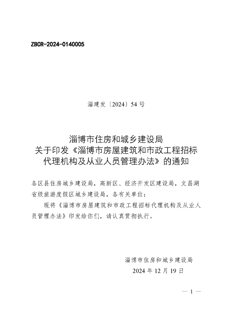 关于印发《淄博市房屋建筑和市政工程招标代理机构及从业人员管理办法》的通知
