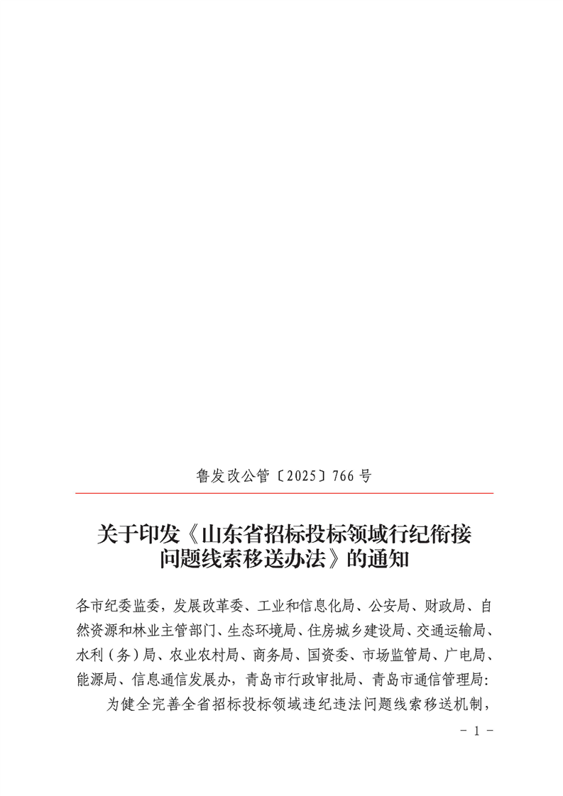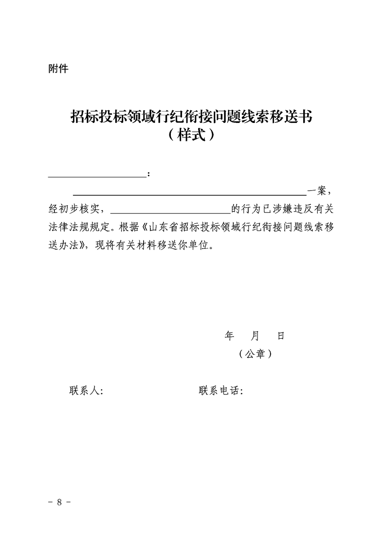 关于印发《山东省招标投标领域行纪衔接问题线索移送办法》的通知.pdf