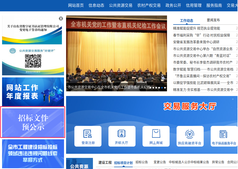 强化公开促透明,打造阳光交易平台。严格执行《公共资源交易领域基层政务公开标准目录》规定,依法公开发布建设工程、政府采购、自然资源、国有产权等领域的交易信息,实现交易项目法定公开信息全面公开,交易流程清晰透明、环环相扣,交易环节可查询、可追溯,打造交易信息全生命周期公开模式,为市场主体查询交易内容提供便利。探索推进招标文件预公示,有效延长市场主体投标准备时间,进一步增强招标活动的透明度和公信力,助力营商环境持续优化。截止目前,已提前发布招标文件20个。