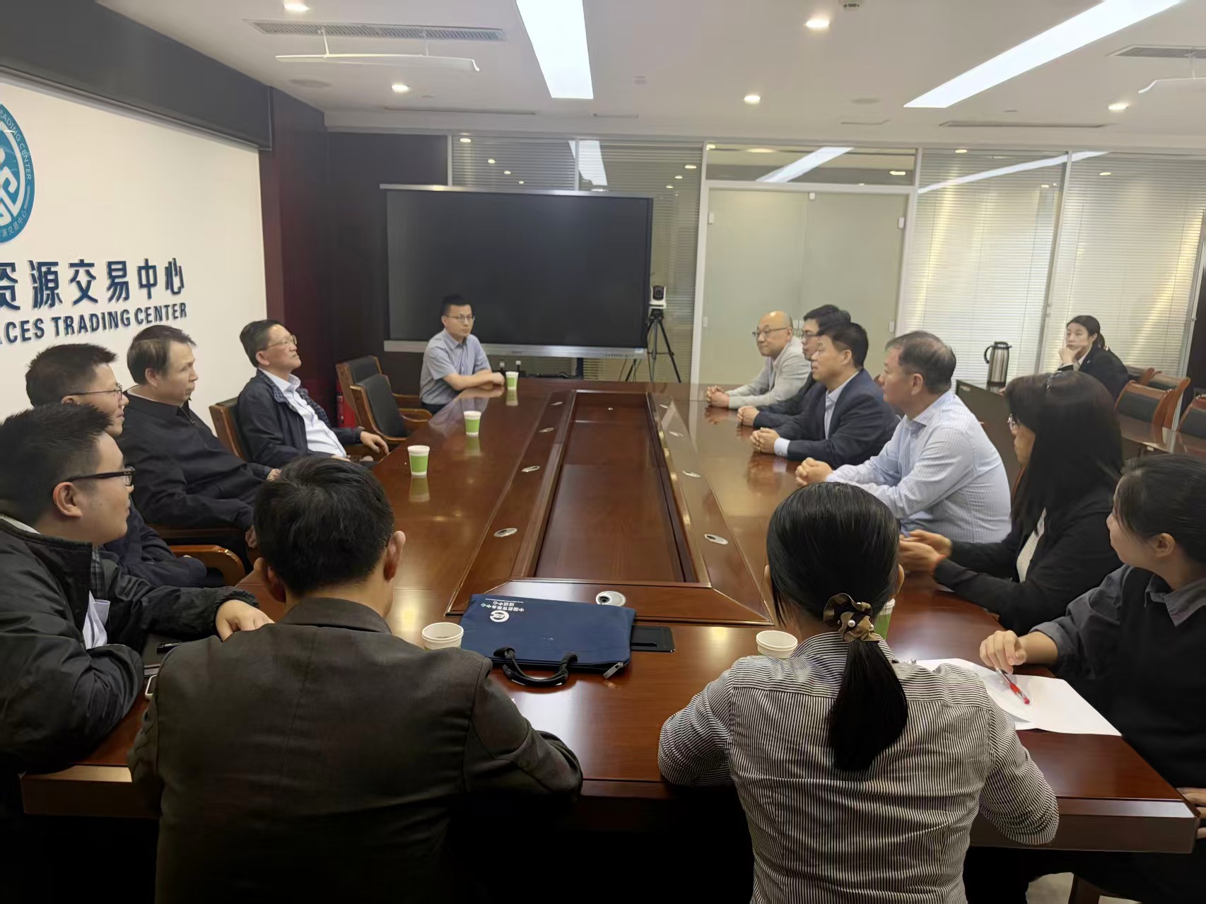 调研组一行参观了中心业务受理大厅、开标大厅、专家评标室、数字见证室、综合监督室等服务场所,详细了解各项业务运行情况。随后举行座谈交流,刘超军同志重点介绍了我市“5+3+2”分散评标、数字见证、智能辅助评标和电子交易档案管理等方面的工作情况。