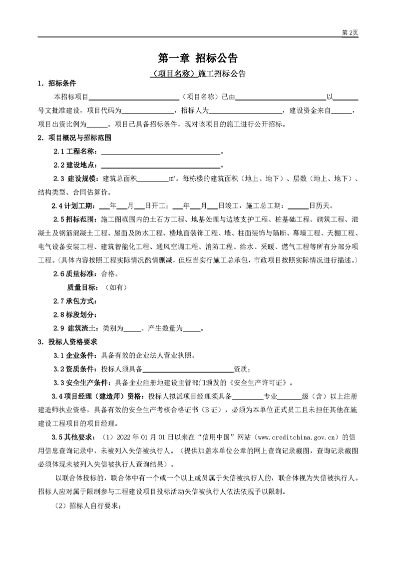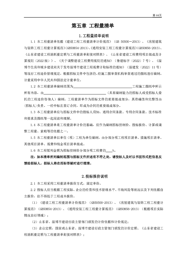 淄博市房屋建筑和市政工程施工招标文件示范文本(2025版)