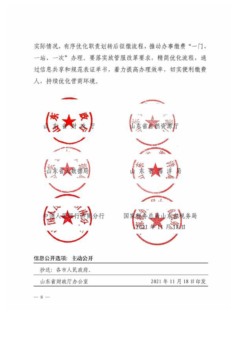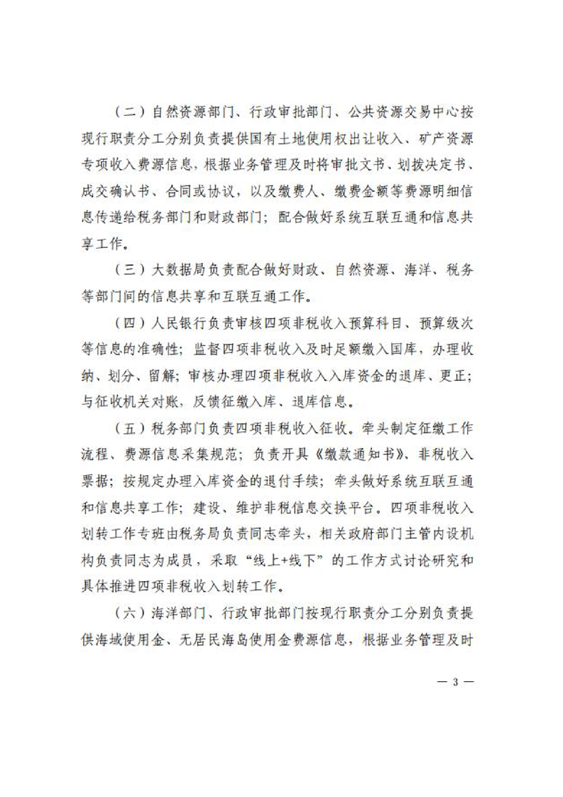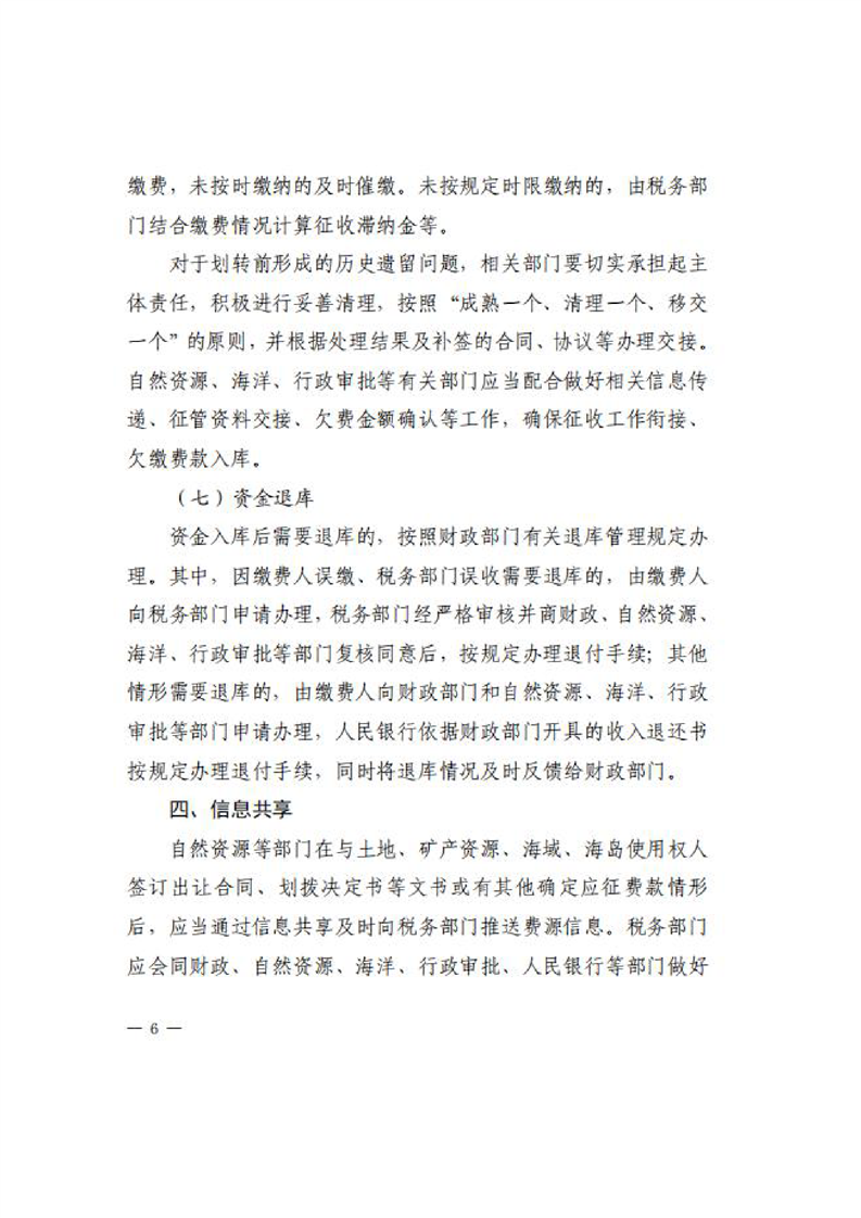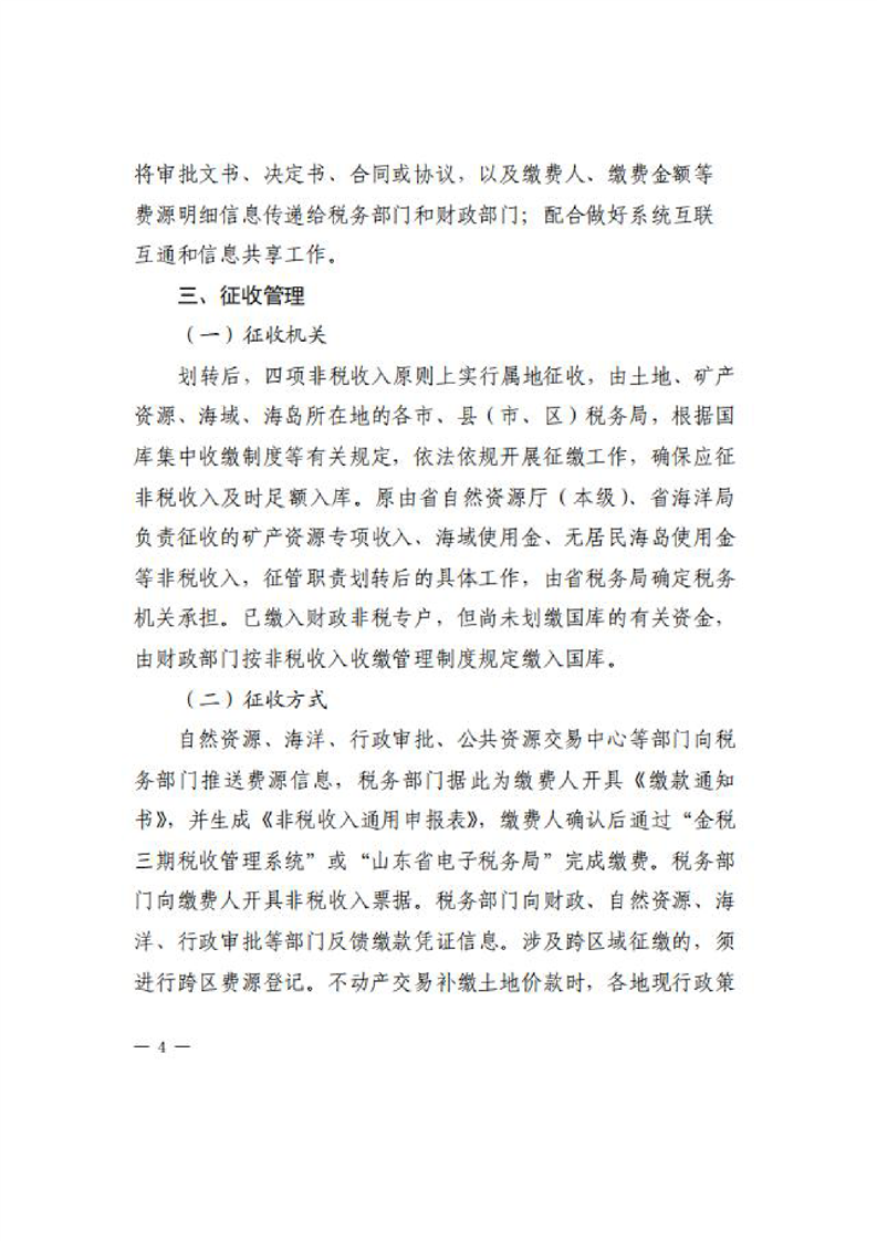 山东省财政厅等6部门关于国有土地使用权出让收入、矿产资源专项收入、海域使用金、无居民海岛使用金征收职责划转事项的通知